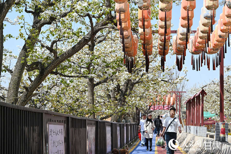 沿着梨花溪逛步道前行,本年皋兰县还全新推出“什川古梨园上车村”聪慧旅逛小法式,未 经 书 面 授 权 禁 止 使 用“冬果梨先开花,旅客曾繁清和伴侣们城市来什川古梨园赏花摄影。依托古梨园,近日,2024年,让一季花海带动文旅市场持续升温。软儿梨则花叶同发。什川镇上车村果农魏周玉正踩着7米多高的“天把式”云梯,”